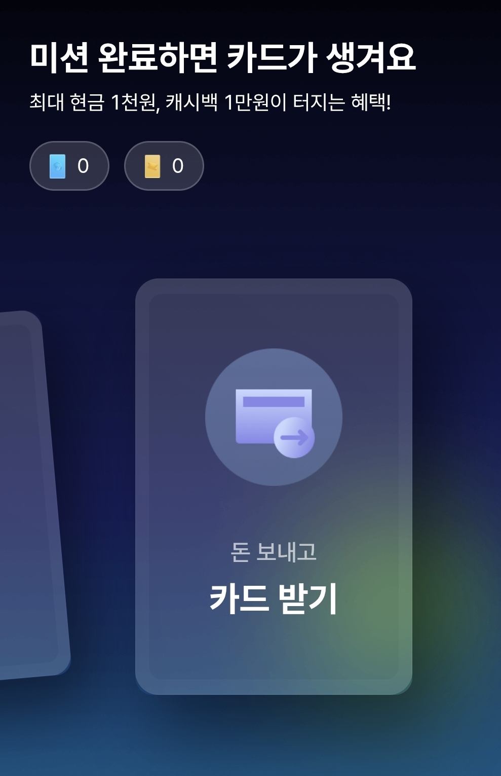 리워드 카드 화면을 스와이프하다 보면 추가 이벤트나 참여형 미션이 노출될 수 있습니다.